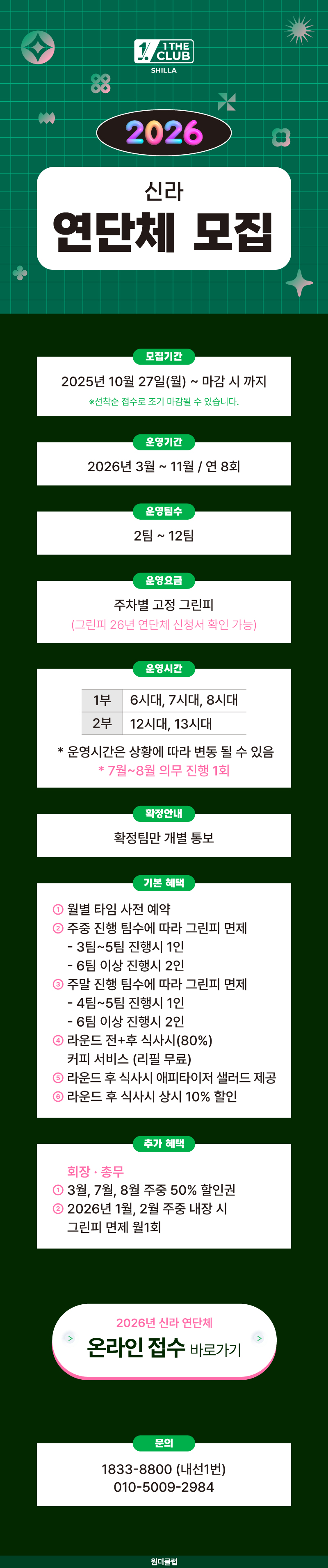 제목[신라CC] 2026년 연단체 모집 2025-10-27 03:10:08