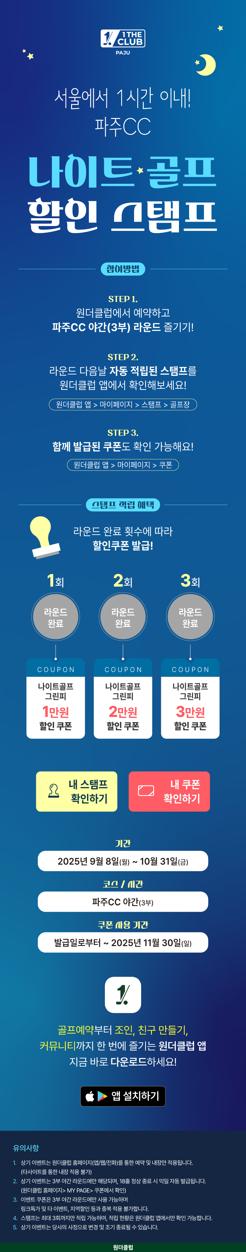 제목[파주CC] 나이트 골프 할인 스탬프 2025-09-05 04:09:46