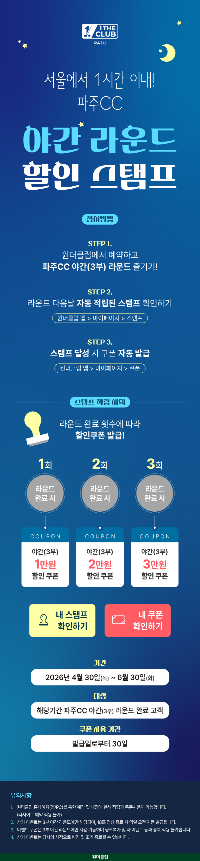 제목[파주CC] 야간 라운드 할인 스탬프 2026-04-29 11:04:40