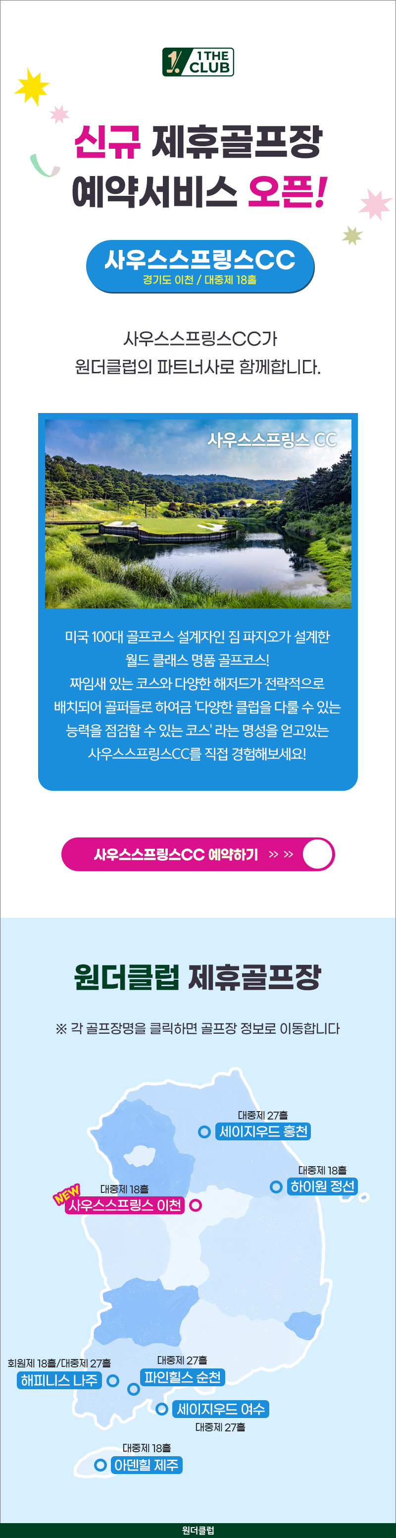 사우스스프링스 이천 세이지우드 홍천 하이원 정선 파인힐스 순천 해피니스 나주 세이지우드 여수 아덴힐 제주 사우스스프링스 예약하기