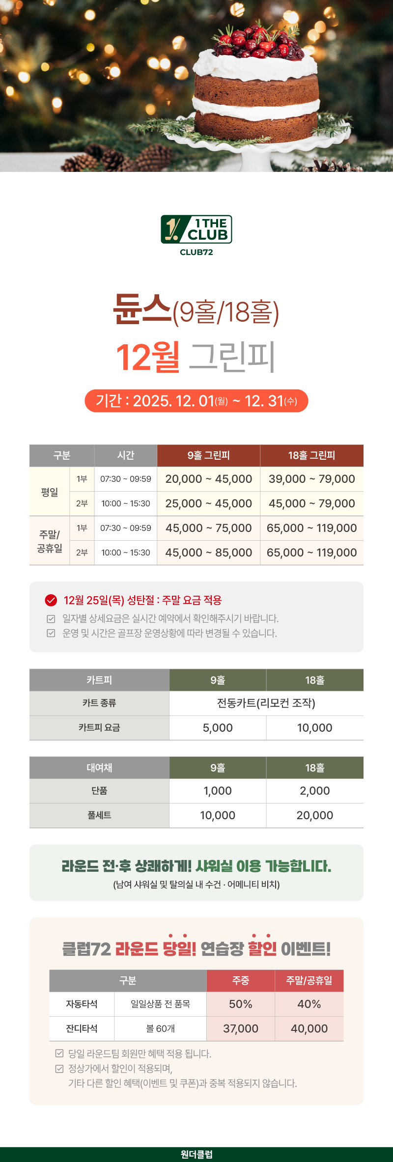 제목[클럽72] 듄스코스 12월 기간별 그린피 2025-11-23 10:11:25